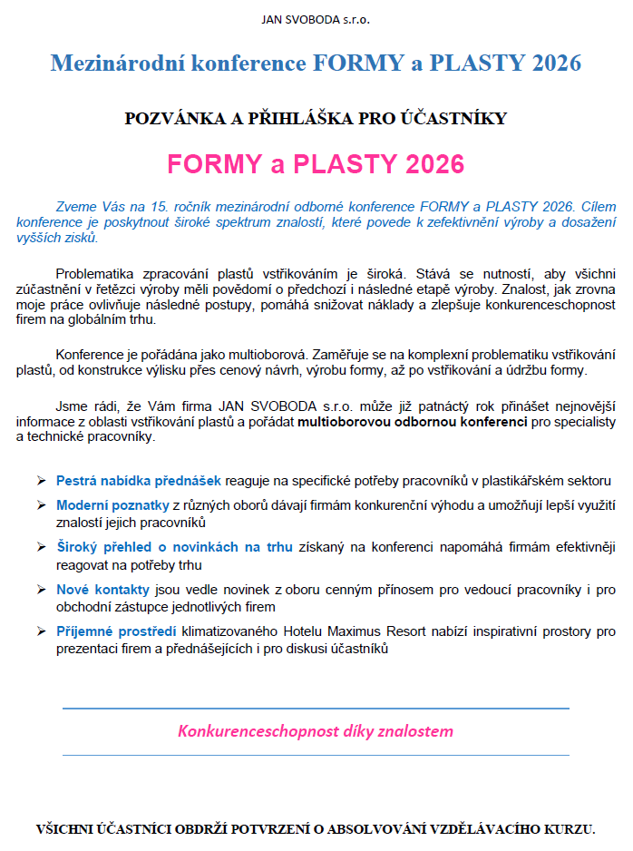 Prevence a efektivita: Přijďte za námi na konferenci FORMY a PLASTY 2026!